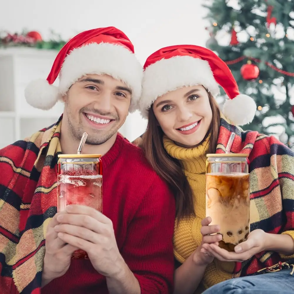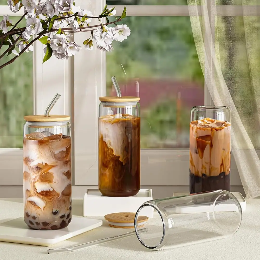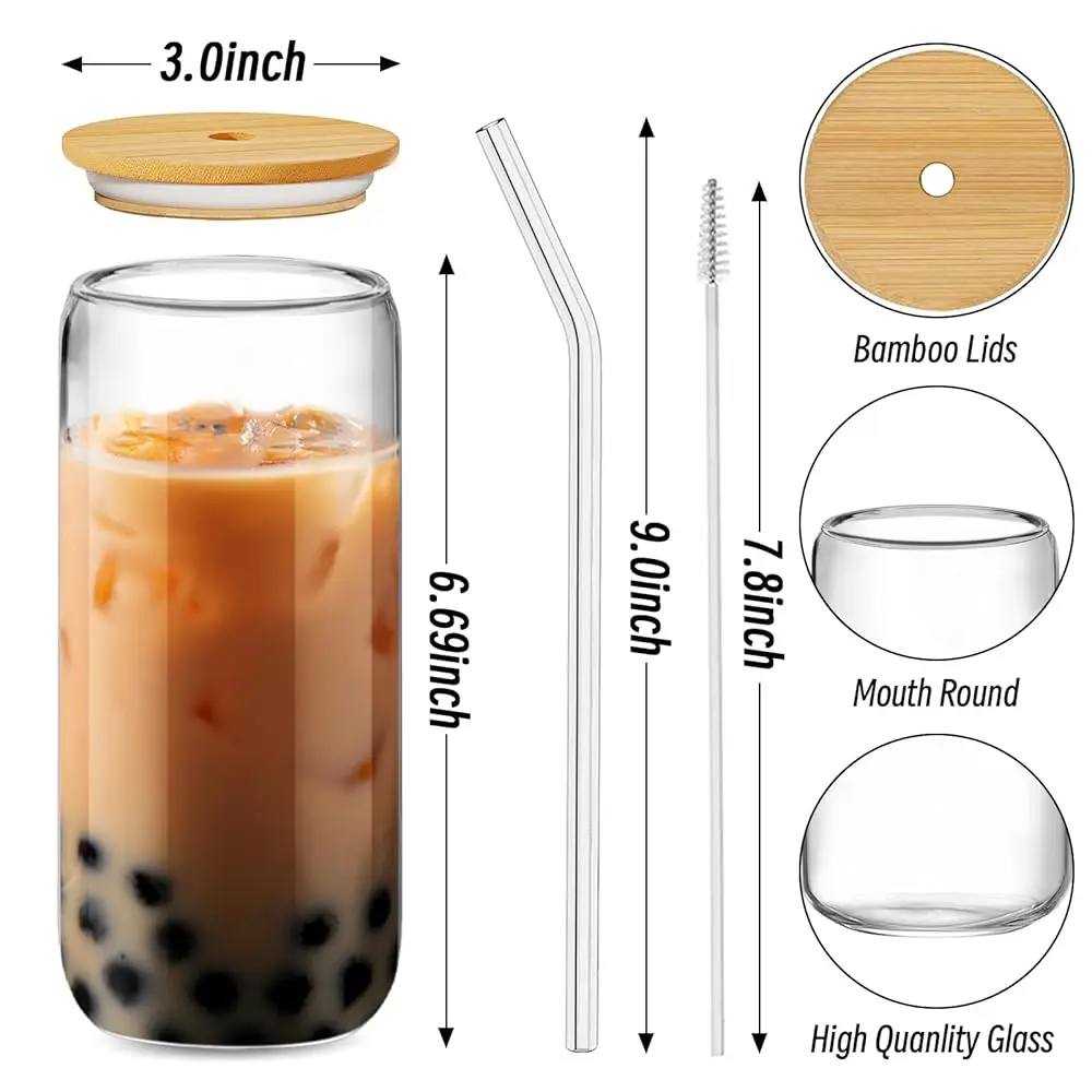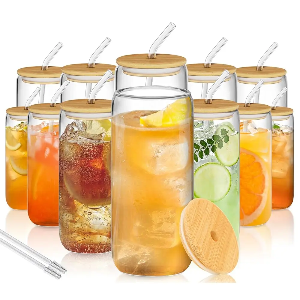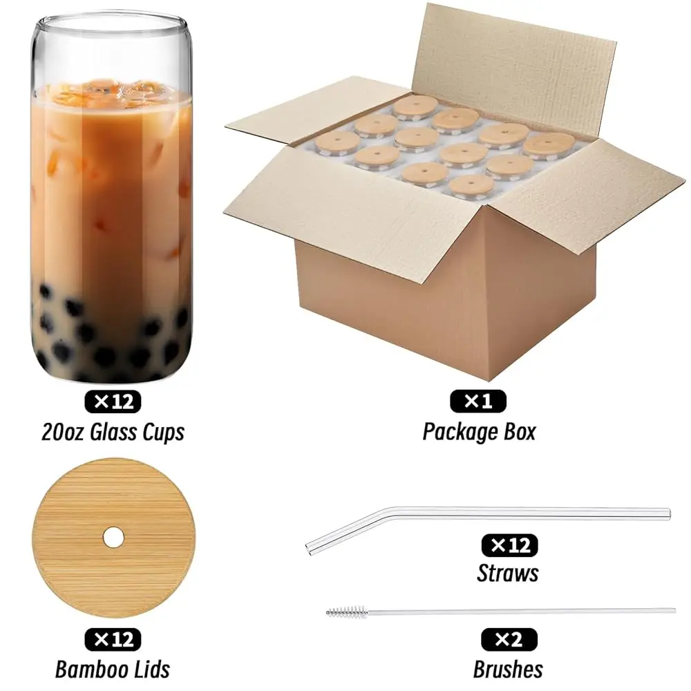 20Oz Glass Cups With Lids And Straws – 12Pcs Can Shaped Drinking Glasses Set, Iced Coffee Cup, Beer Glasses Tumbler For Juice,