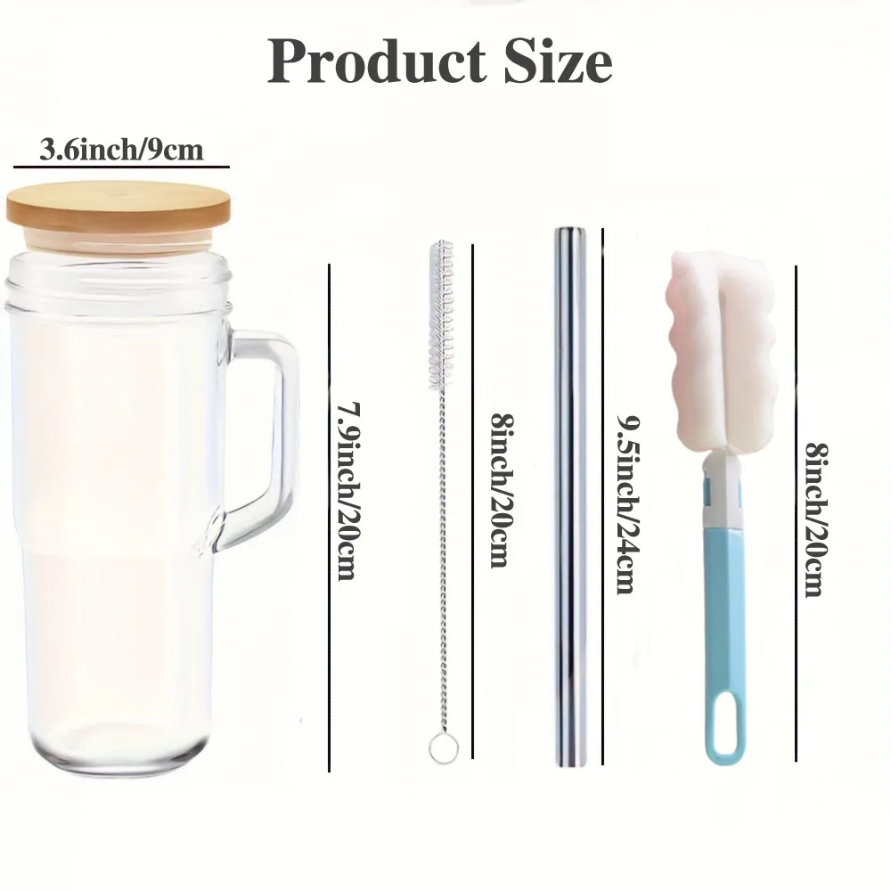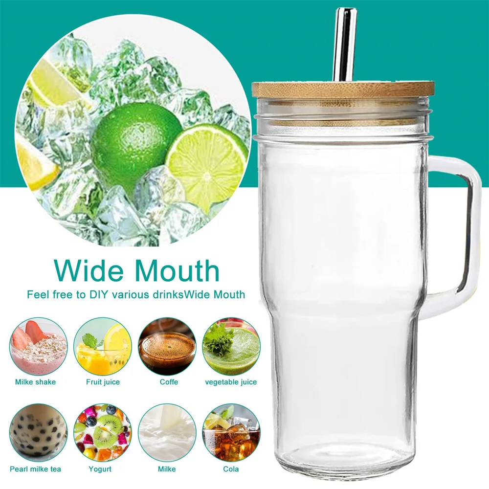 4 Piece 24oz Mason Handle Glass Cups with Lids and Straws Glasses Drinking Set Perfect for Iced Coffee and Beer, fruit water Tea