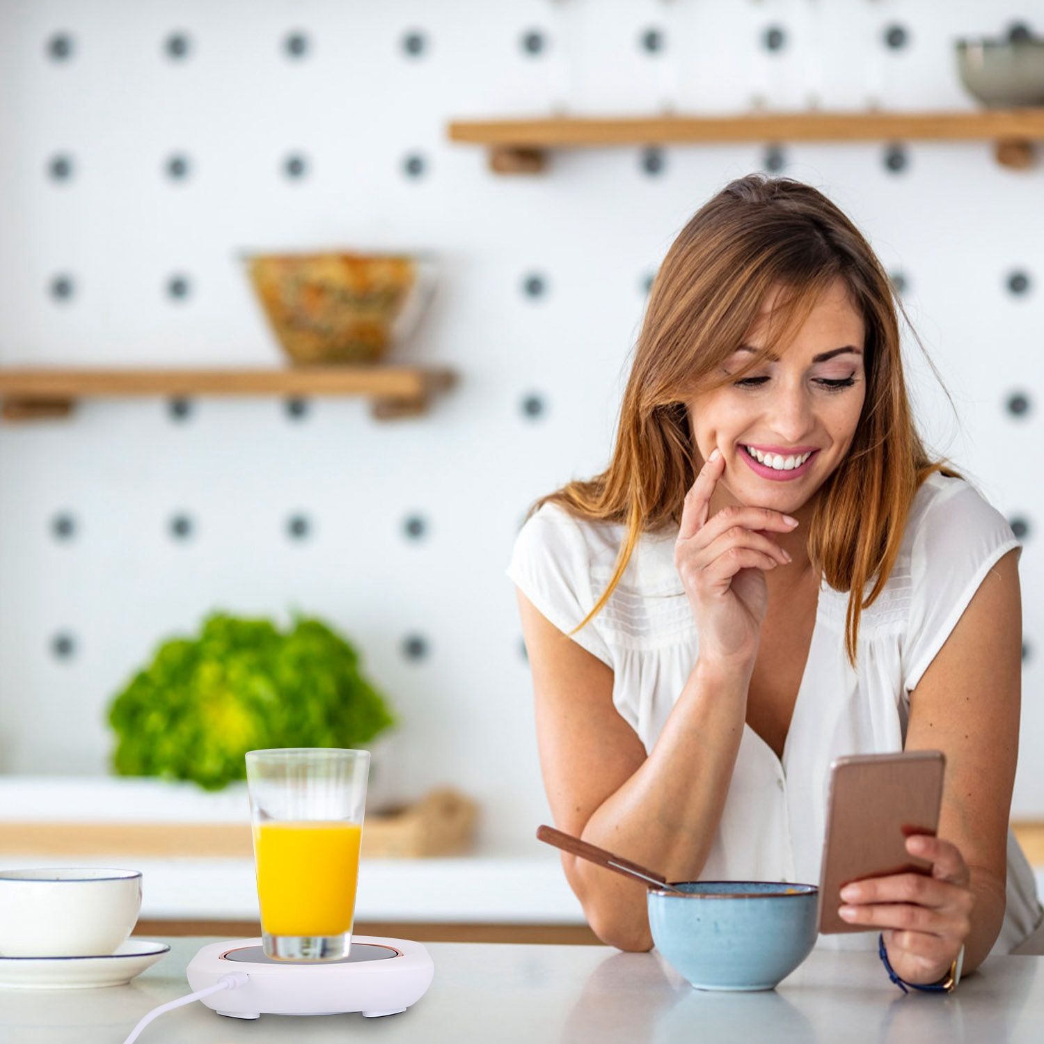 Suitable For Most Cups: 3.1in Heating area fits most cups, such as glass cup, ceramic cup, stainless steel cups and so on. For better heating effect, it’s recommended to use cups with thin wall and flat bottom. Attention: It’s not for plastic or double-layer insulation cups.