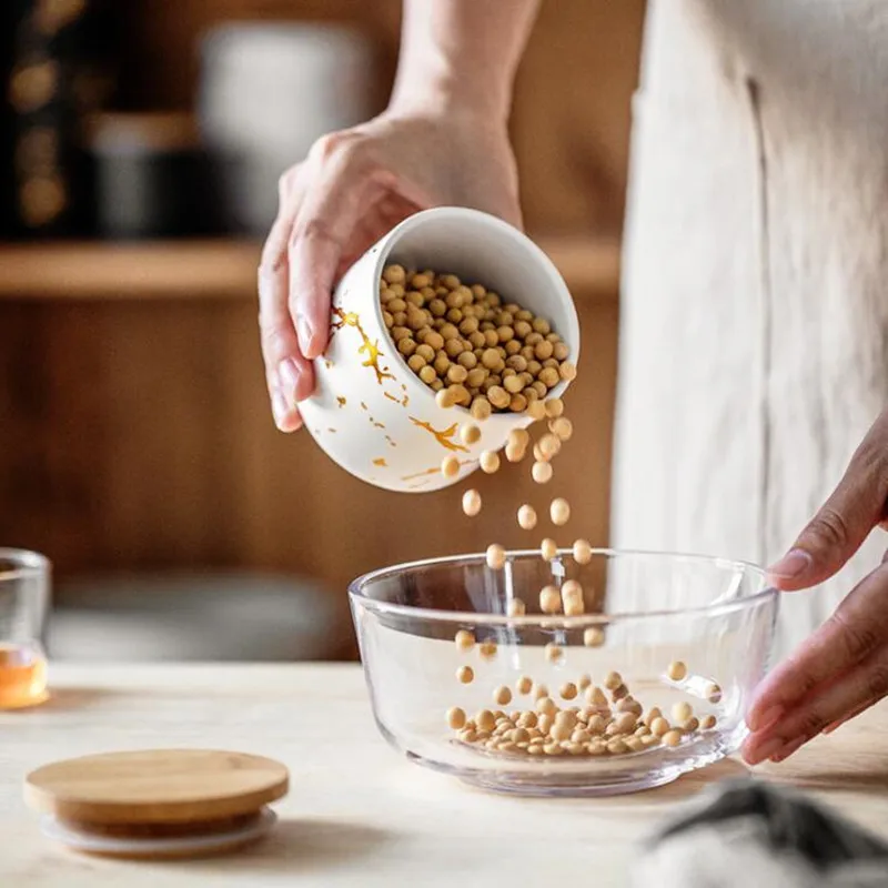 Wooden Trays Glass Bowl Nuts Fruits Food Container For Cereals Jar Double Layer Candy Jars With Wooden Lid Home Kitchen Storage
