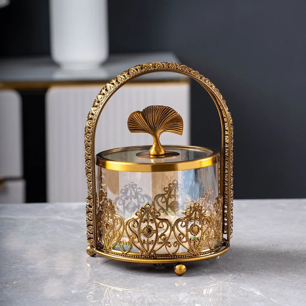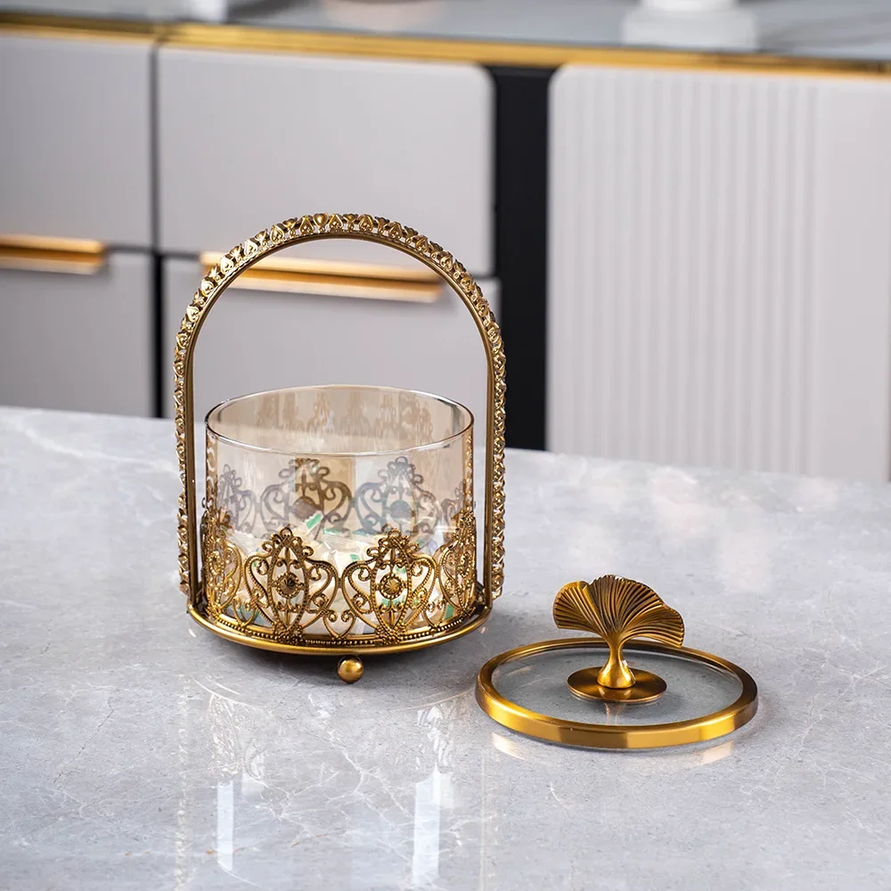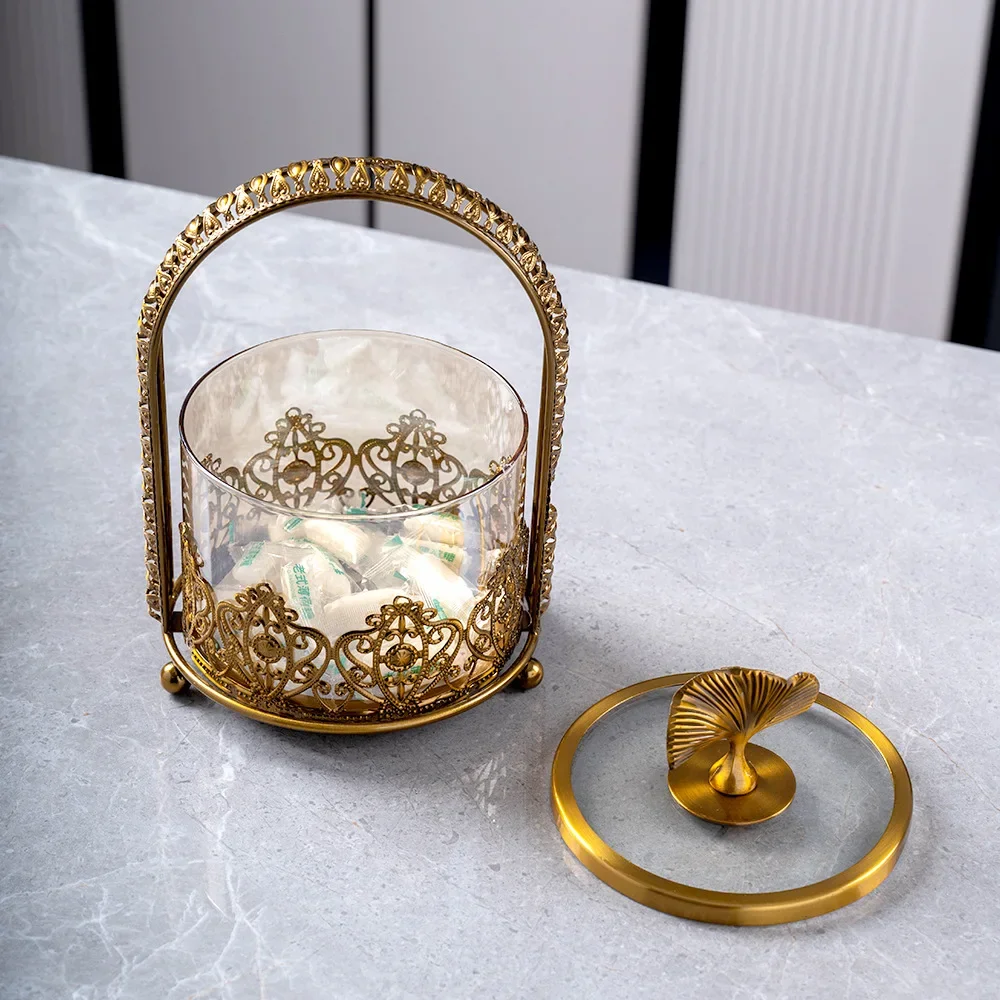 Luxury Carved Portable Glass Storage Jar Snacks Storage Jar with Lid Living Room Coffee Table Storage Decorative Ornaments Box