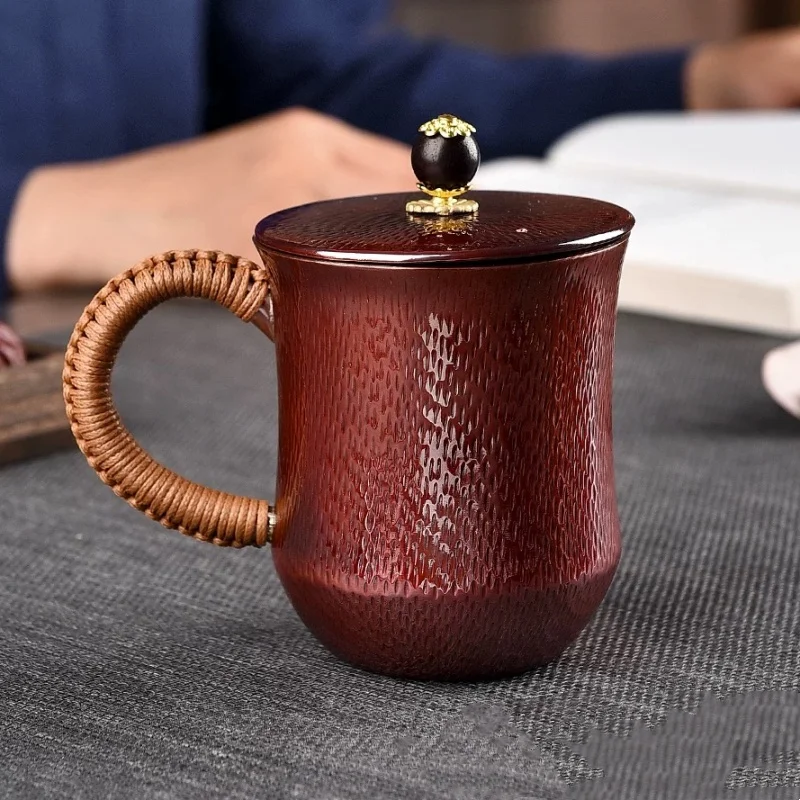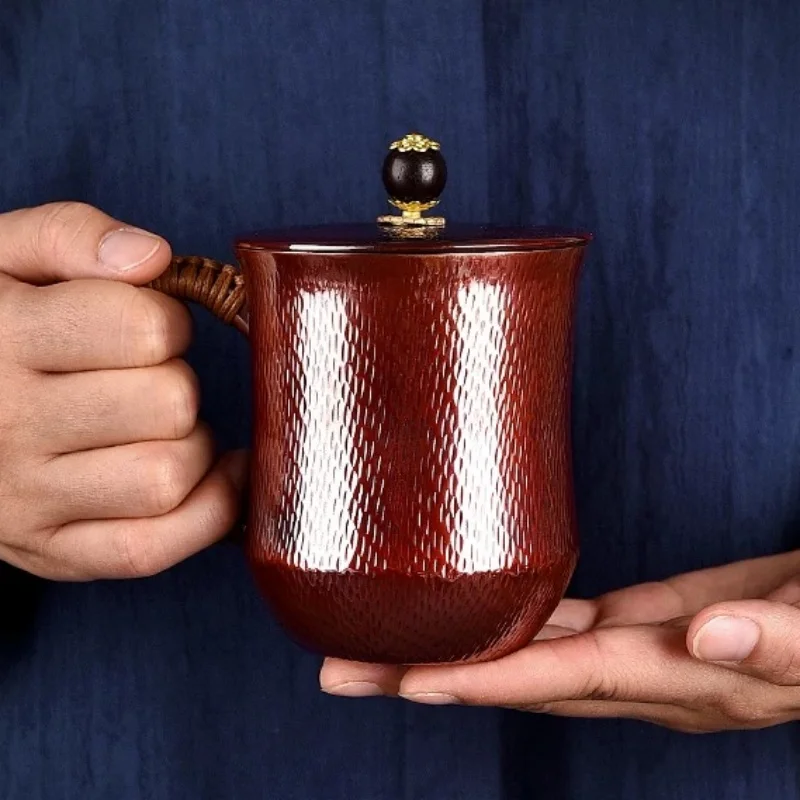 Pure Copper Moscow Mule Coffee Mug Engraved Exquisite Luxury Vintage Durable Coppery 300ml Tumbler Weave Handle Tea Cup